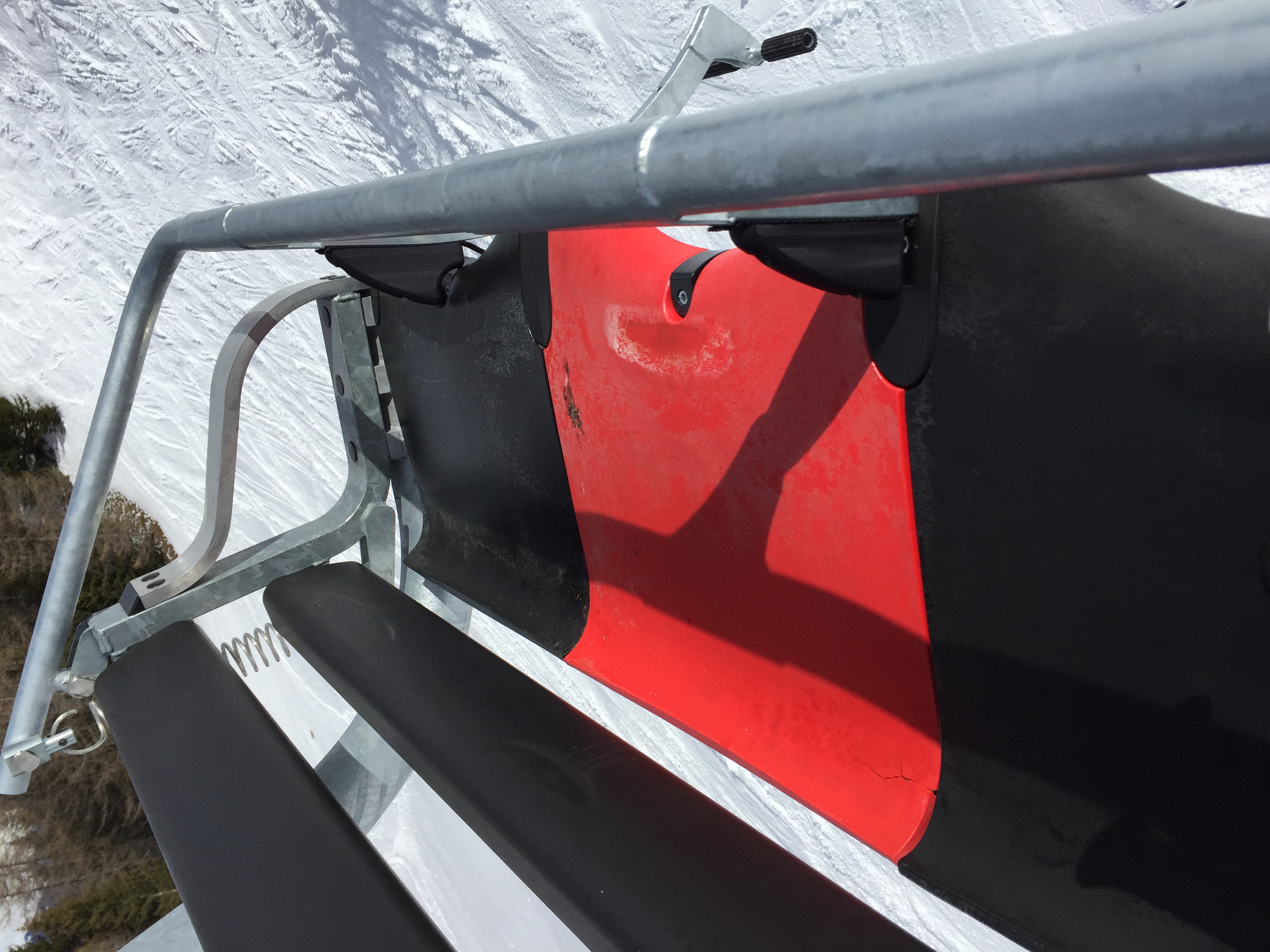 En effet, il tournait ce WE, les sièges sont toujours dans le même état, (voir photo) mais je pense qu'ils ont changé le garde corps. En tout cas la position du repose pieds est complètement modifié, et enfin à la bonne place pour poser les ski, sous le siège et plus 30 cm sur l'avant