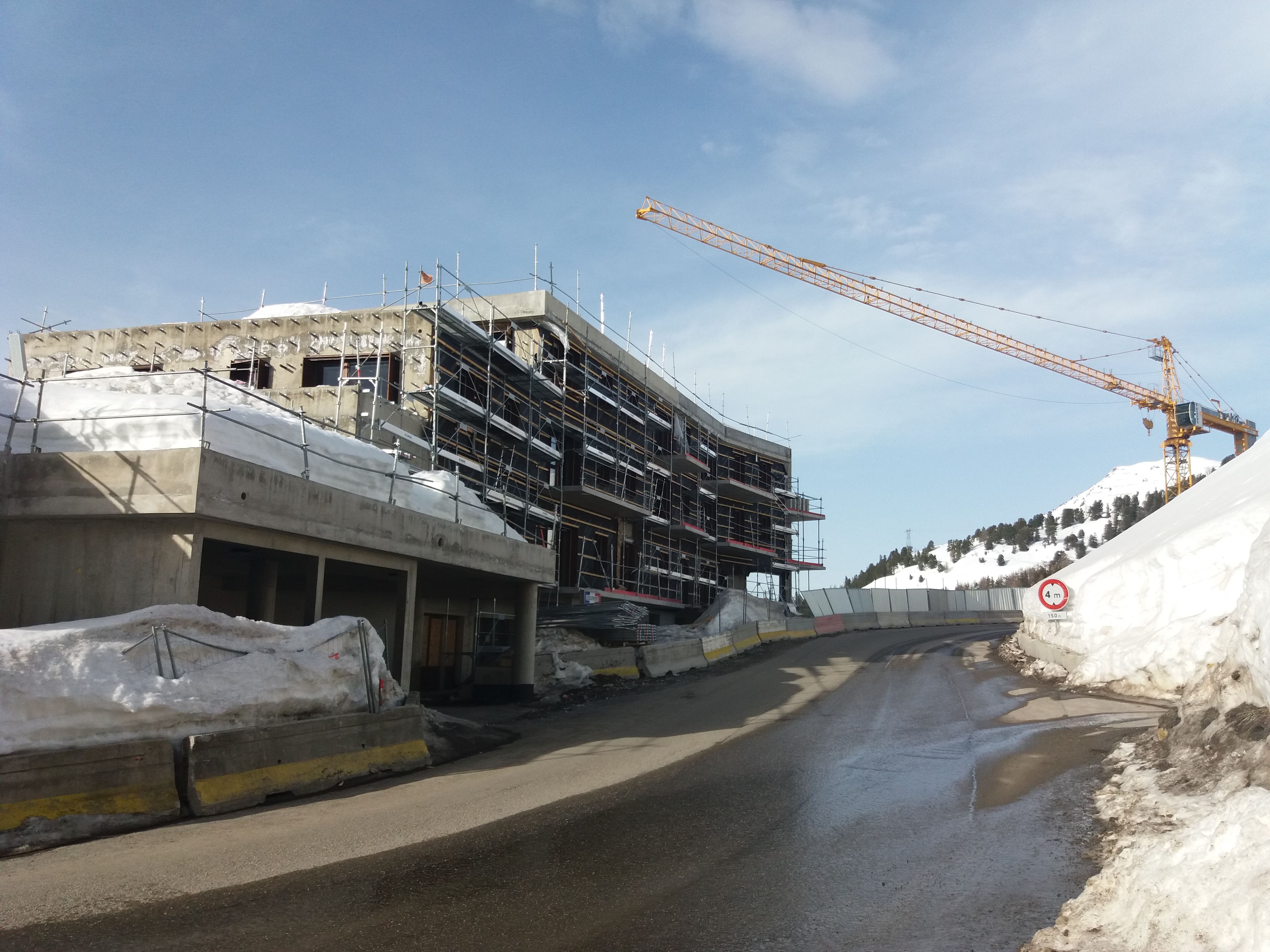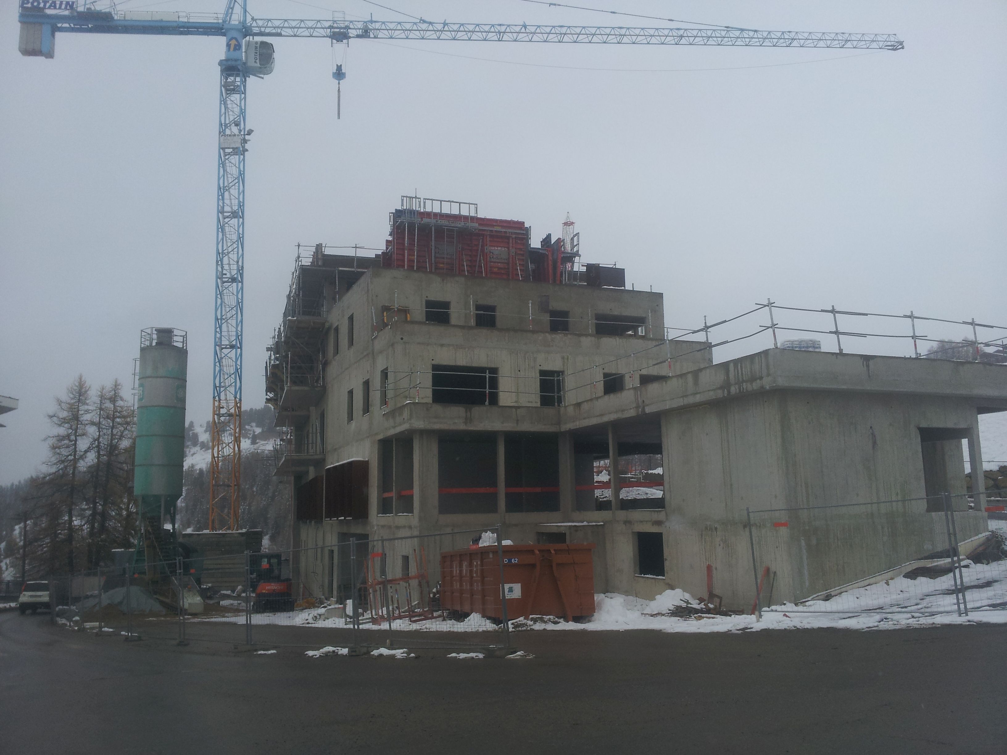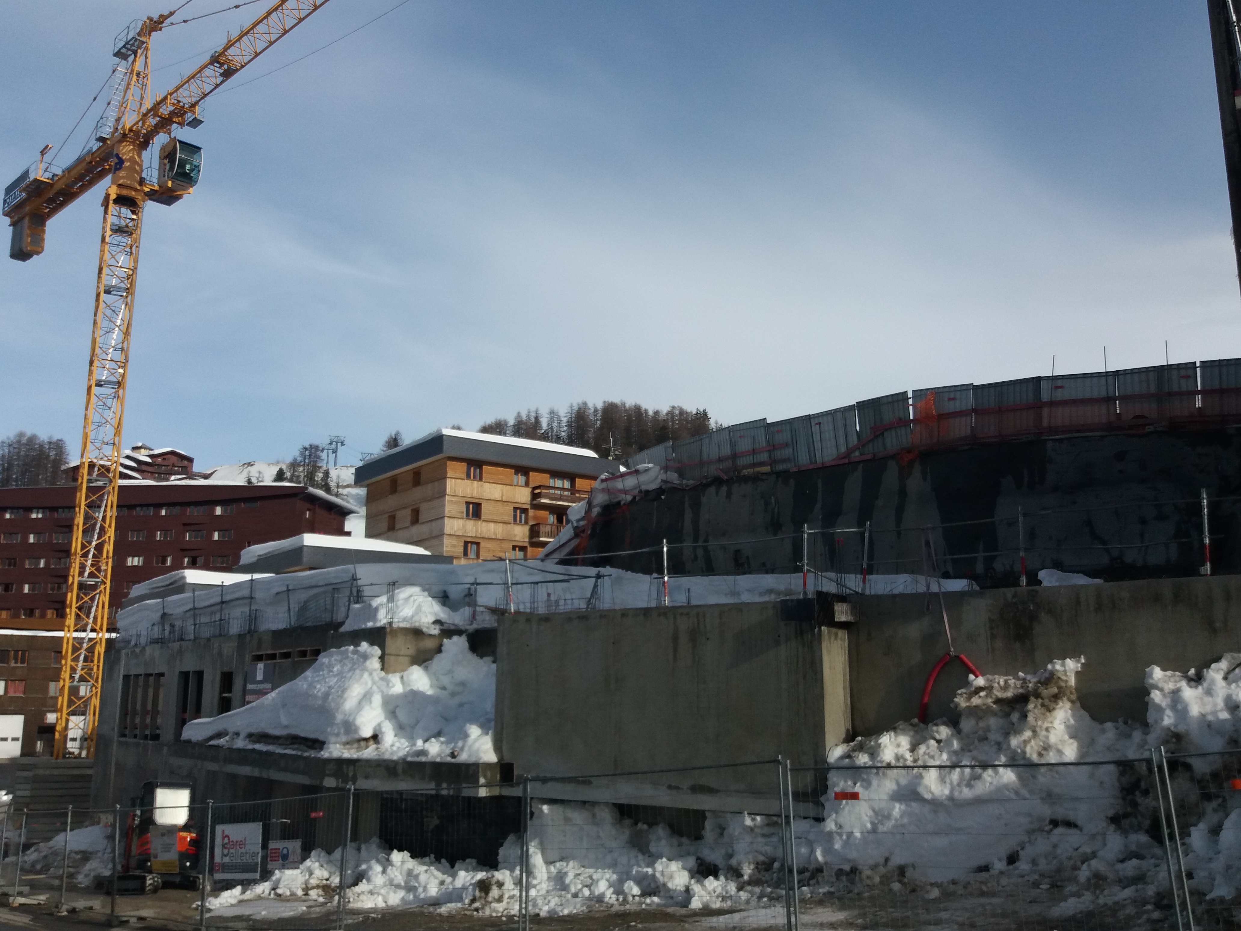 Voici quelques photos de l'avancement du chantier des lodges à Plagne Centre. La circulation alternée est toujours en place mais la centrale à béton n'est plus là et on devine un semblant de chaussée à droite en partant de centre. Espérons que la circulation sera rétablie pour le début de la saison.