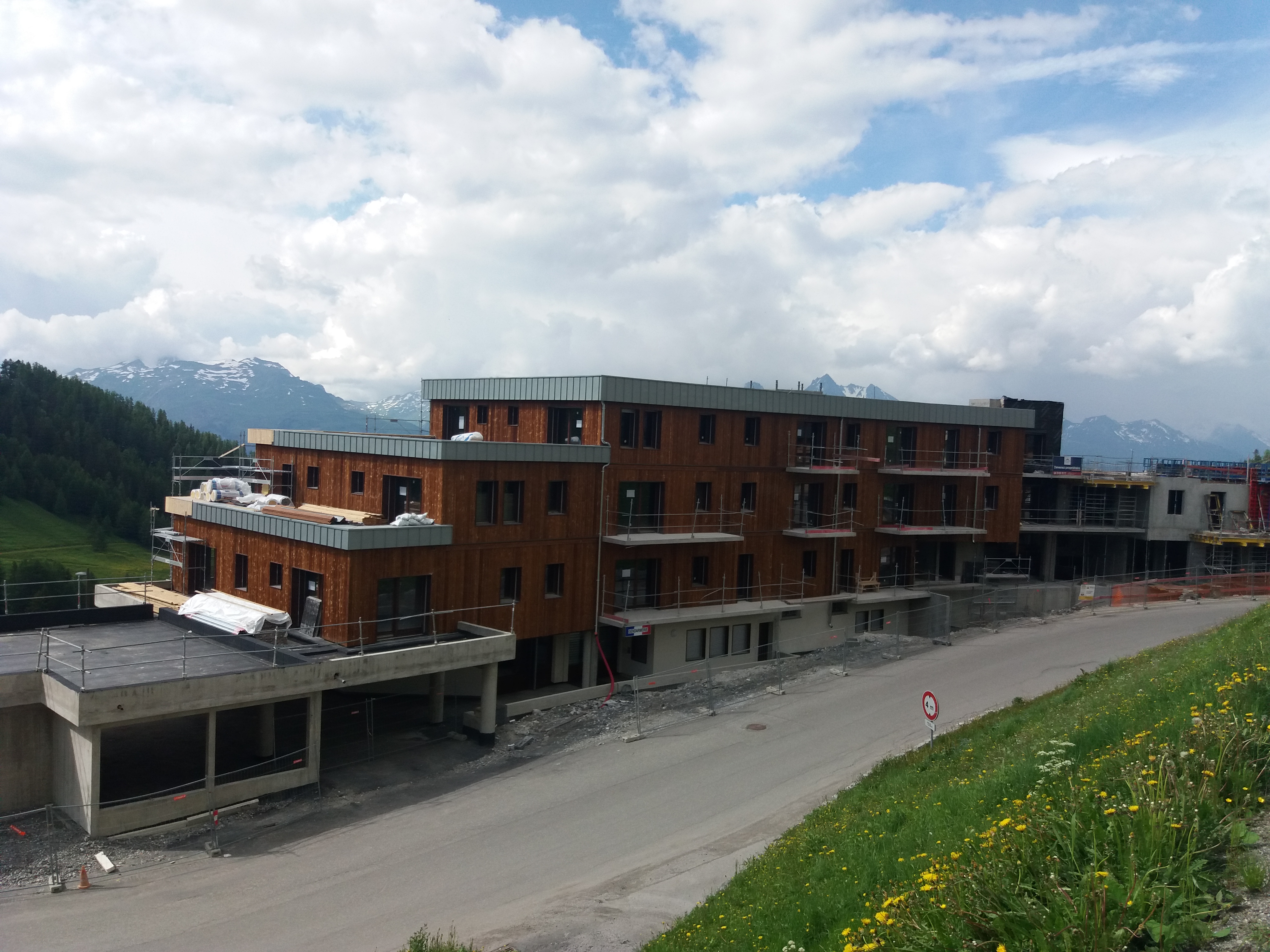 Les lodges 1970 ont eux aussi bien avancé. Dans la partie la plus en aval on trouve la nouvelle caserne des pompiers, nous ne l'avons pas pris en photo car il y avait des personnes qui travaillaient encore ce matin. Si on a la possibilité on postera des photos demain.