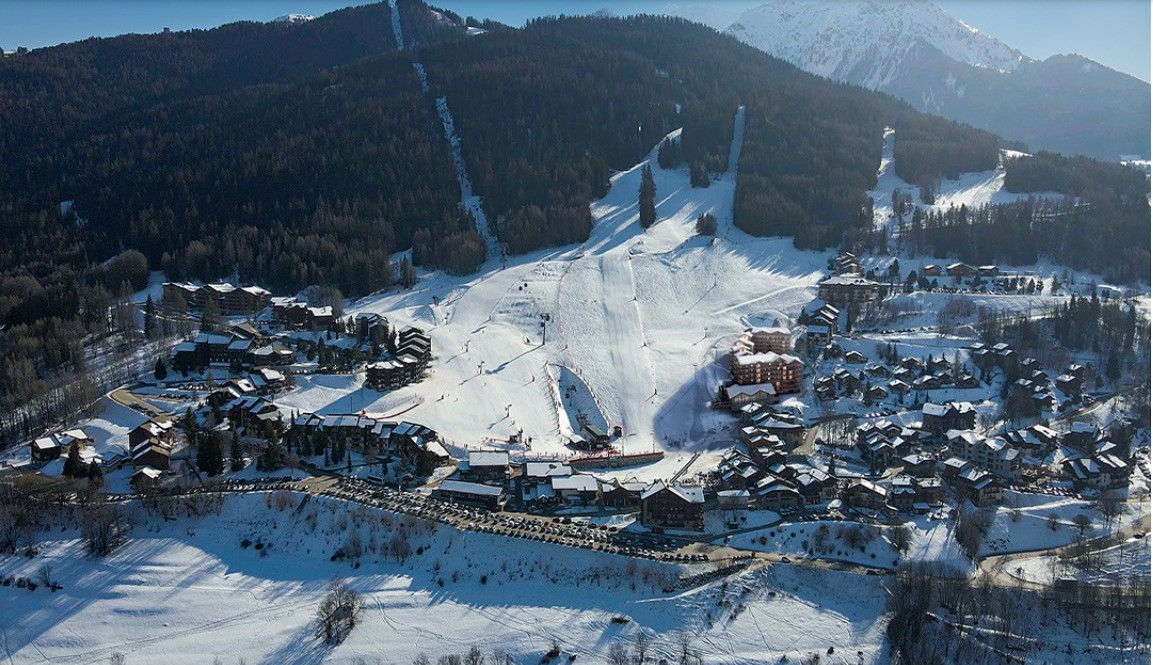 Voici l'implantation du projet "Cœur des Cimes" dans la station, à droite sur la photo le long du téléski:
